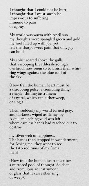A dull and aching void was left where careless hands had reached out to destroy my silver web of happiness....